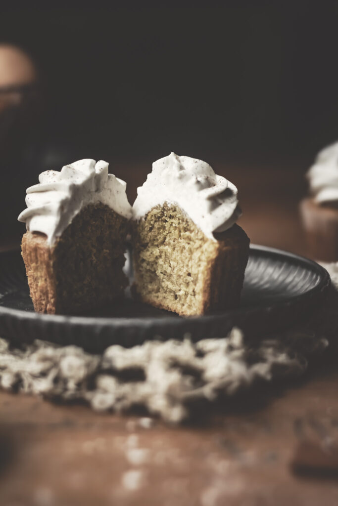 - Once cupcakes are completely cool, frost on top of each cupcake using a piping bag and decorating tip (I use Wilton Open Star 1M tip). Store unfrosted cupcakes at room temperature for up to 2 days or in the refrigerator for up to 5 days. Bring back to room temperature before serving.